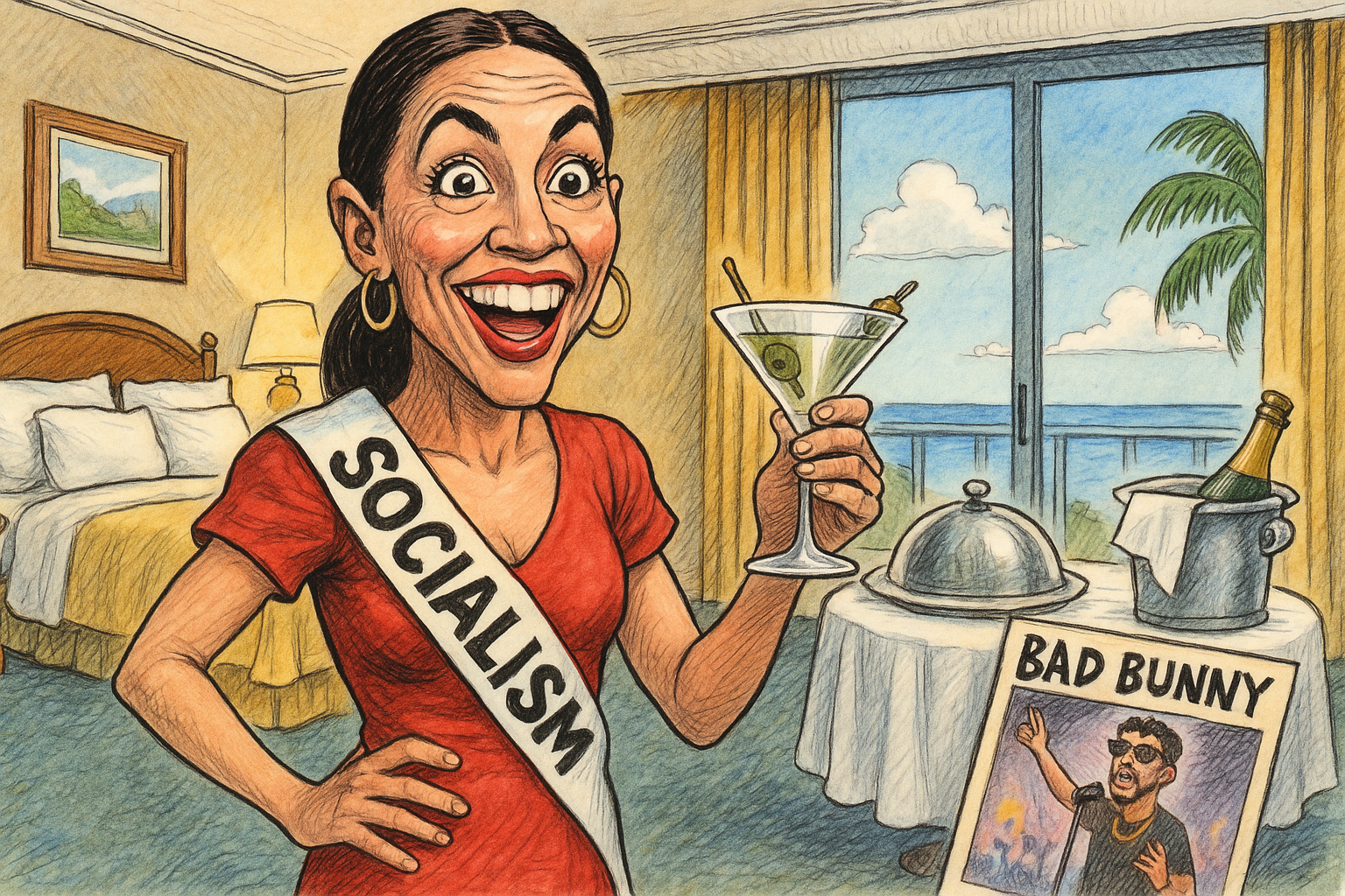 According to insiders, AOC believes dismantling capitalism is simply more effective when conducted from a boutique hotel featuring premium linens, ocean views, and room service that arrives before the revolution gets awkward.