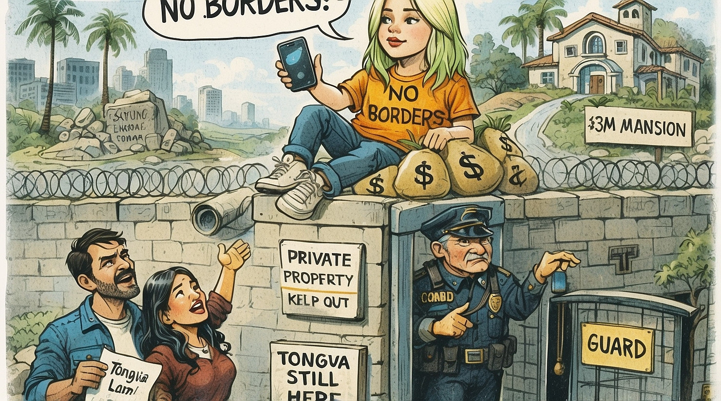 “I stand with Indigenous peoples,” Eilish reportedly said while being driven through her private security gate. “But I also stand behind really tall walls that keep out… everyone.”