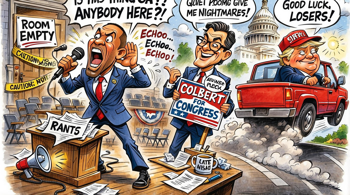 Colbert has since floated a potential run for Jeffries’ seat, citing his extensive experience speaking passionately to rooms that are technically occupied but spiritually absent.