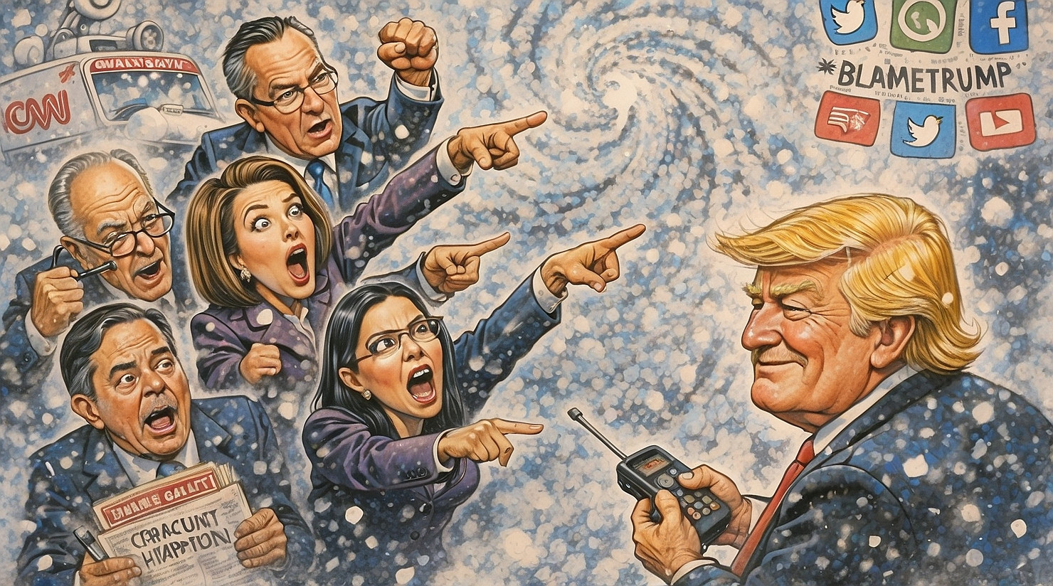 Progressive activists took to social media preemptively blaming Republicans for icy roads, flight cancellations, and the emotional labor required to locate winter coats.