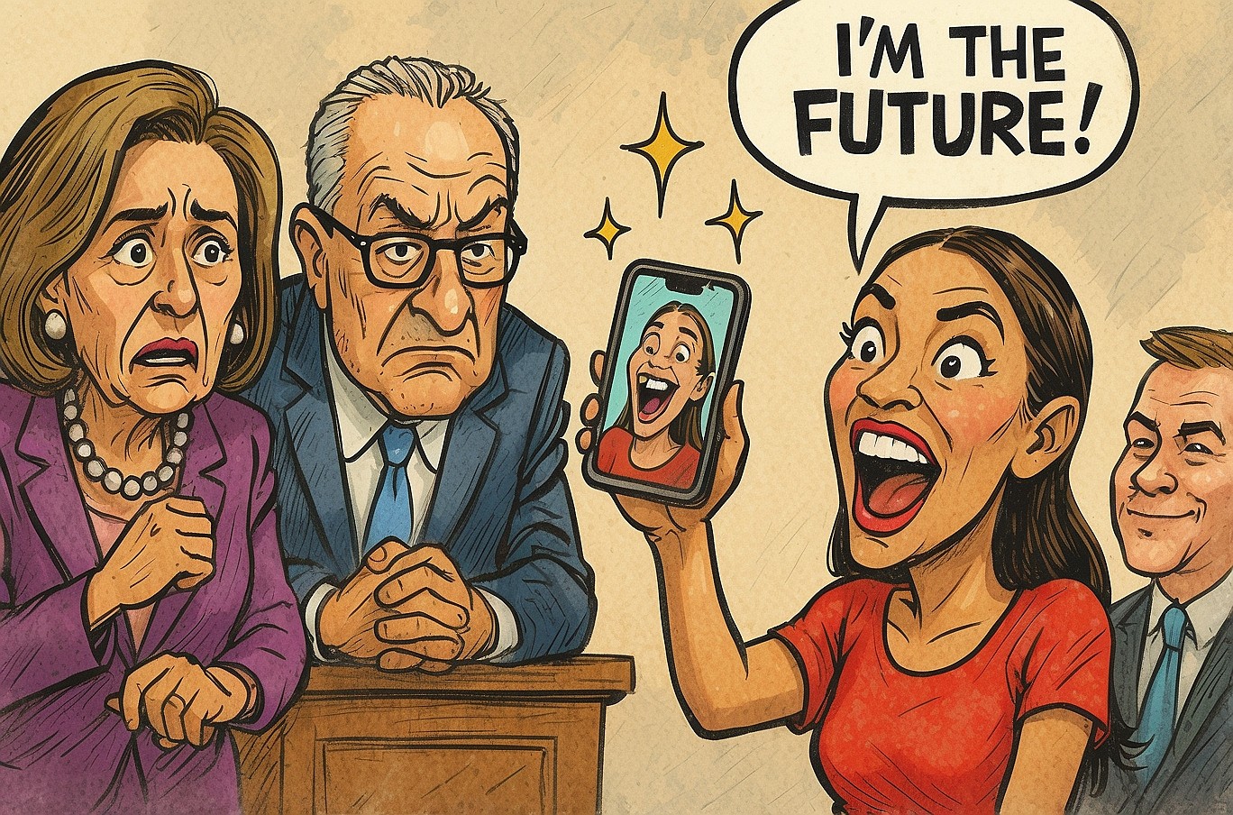 Pelosi and Schumer insist they still run the house, while AOC livestreams her rebellion in 4K with filters, hashtags, and zero restraint.