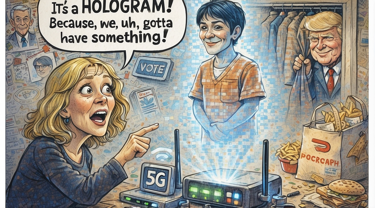 Online investigators on BlueSky announced this week that Ghislaine Maxwell has been replaced by a government-issued hologram operating on public broadband, sources have confirmed.
