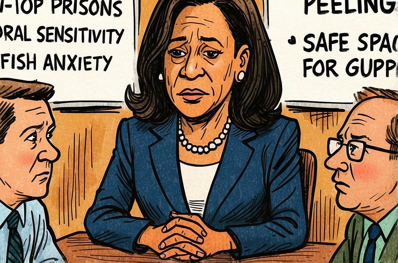 Harris said she spent weeks preparing zingers about “comfier prisons, cultural sensitivity reforms, and the future of safe places for goldfish — preferably with tax payer-funded aquariums,” only for Trump to blindside her with questions about jobs, inflation, and national security.