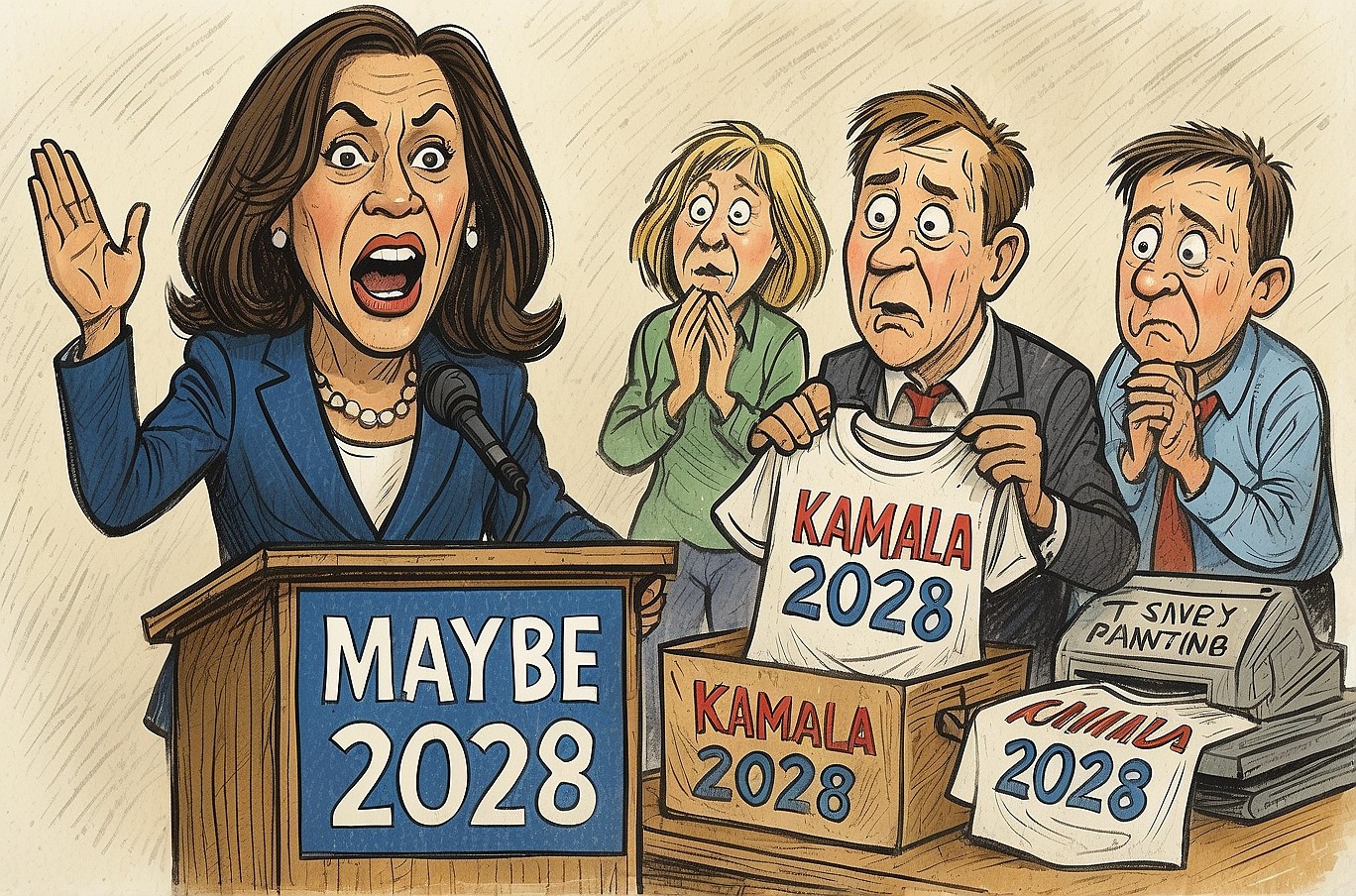 “Her campaign slogan writes itself — ‘Kamala 2028: Maybe!’”