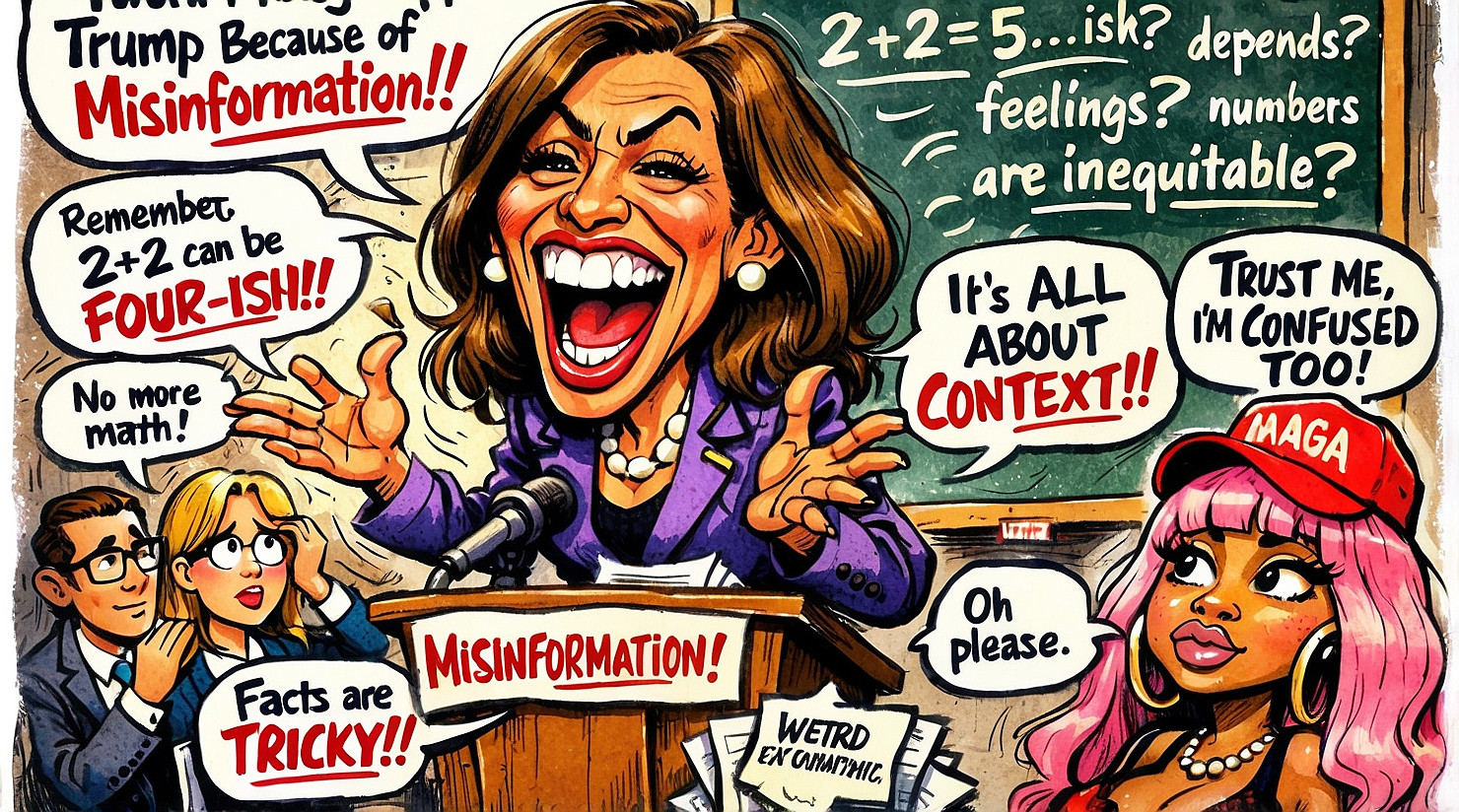 Witnesses say Harris went on to clarify that while two plus two does equal four, it can also be interpreted as “four-ish, depending on the context, the equity of the numbers, and how the math feels.”