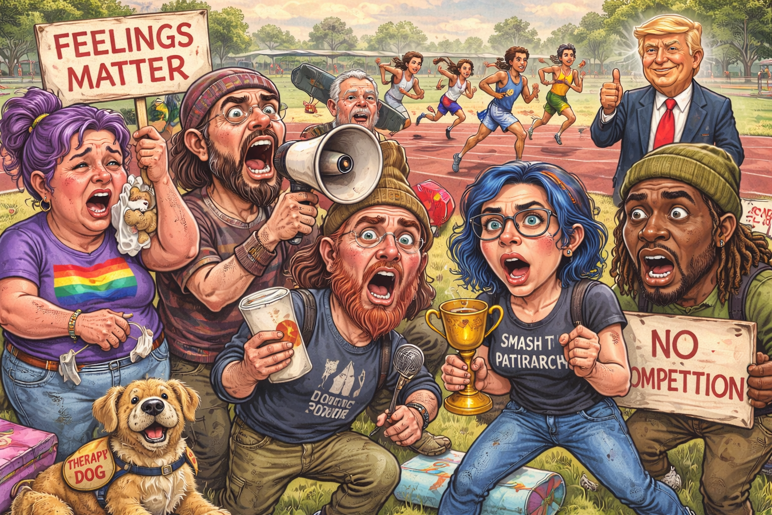 Within minutes, progressive “warriors” flooded social media claiming the games unfairly prioritize strength, speed, and winning over feelings, reflection, and loosely structured conversations about childhood trauma.