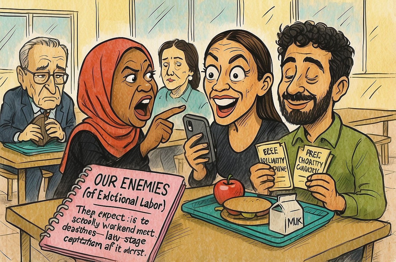 As of press time, Schumer was last seen eating alone in the Senate cafeteria, clutching his wallet as Omar and AOC organized a candlelight vigil for “emotional wealth inequality,” complete with matching pink berets and union-approved tears.