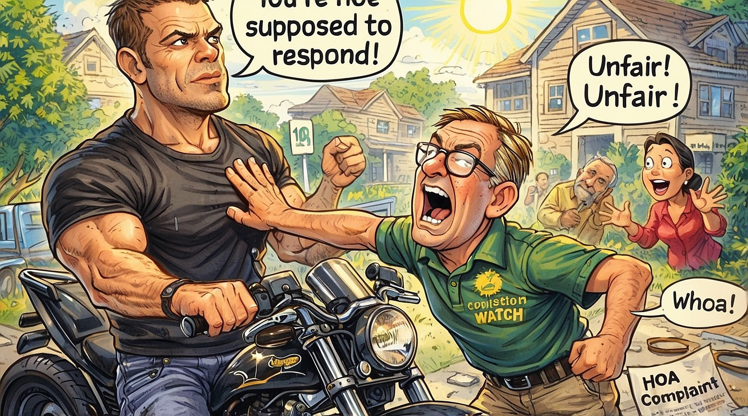 As of press time, the man was reportedly drafting an HOA complaint demanding stricter rules against larger, stronger people responding to smaller ones.