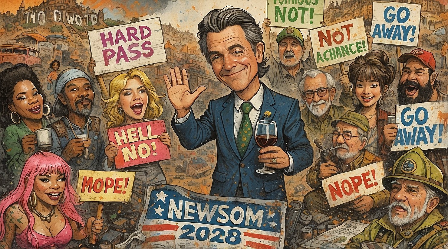 Meanwhile, Newsom’s long-whispered 2028 ambitions are reportedly fading faster than a Biden sound bite.
