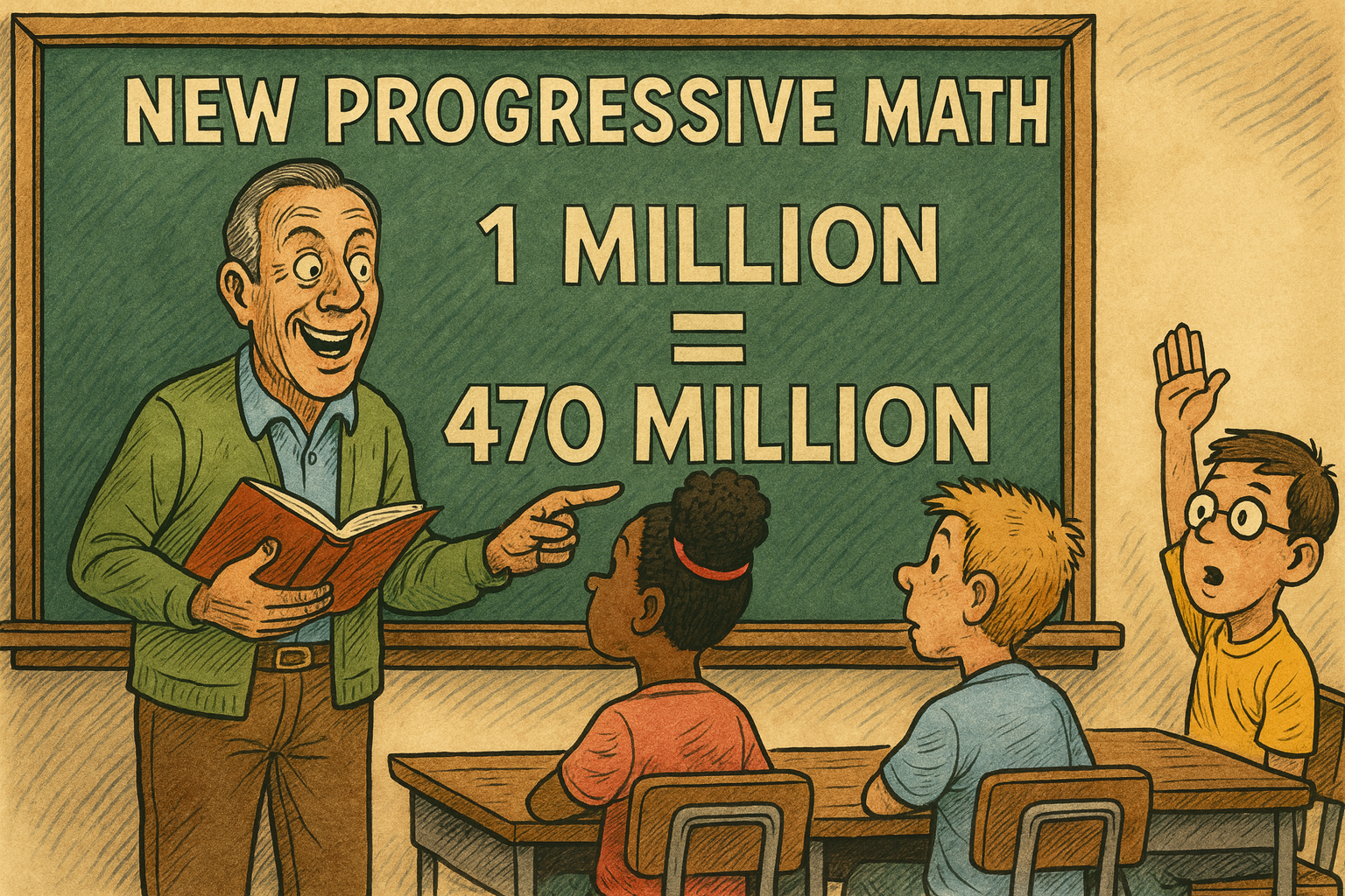 Under this enlightened curriculum, 1 equals 470, 2 equals “close enough,” and fiscal responsibility is a group project.