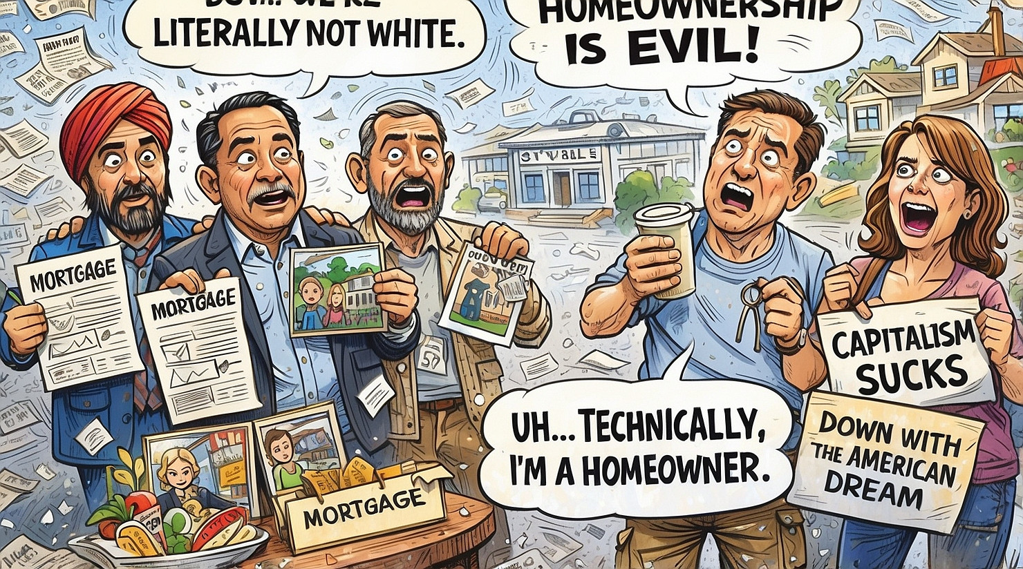 The confusion began after a post made by a Mamdani housing aide resurfaced suggesting owning property reflects systemic wrongdoing, prompting members of SPONY — Small Property Owners of New York — to gather outside City Hall holding mortgage statements, family photos, and the kind of expressions usually seen when someone is told success is now suspicious.