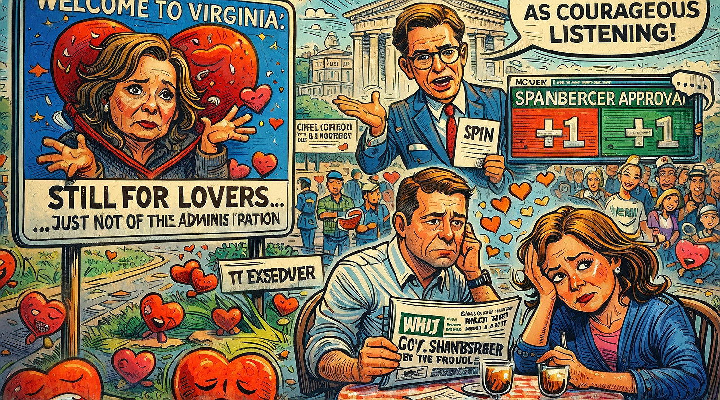 Virginia officials moved quickly this week to reassure the public that the commonwealth remains very much “for lovers,” even as Governor Abigail Spanberger’s approval rating reportedly collapsed so fast it briefly qualified as a historical reenactment of buyer’s remorse, Sources have confirmed